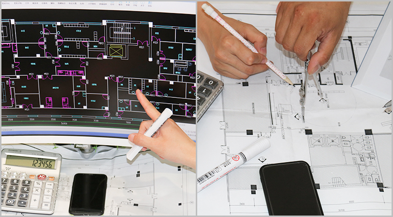 每承接一個工程,公司都會派出經(jīng)驗(yàn)豐富的技術(shù)團(tuán)隊上門勘察、實(shí)地測量,提供工程設(shè)計方案。測量各個房間尺寸及造型情況,做好記錄,做到心中有數(shù)。